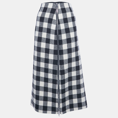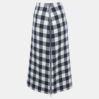Gucci Monochrome Checker Pattern Wool Side Zip Detail Maxi Skirt M 1221768 - 1