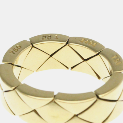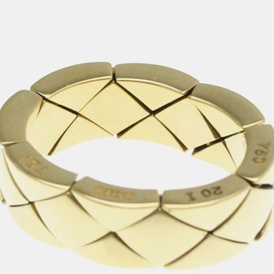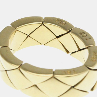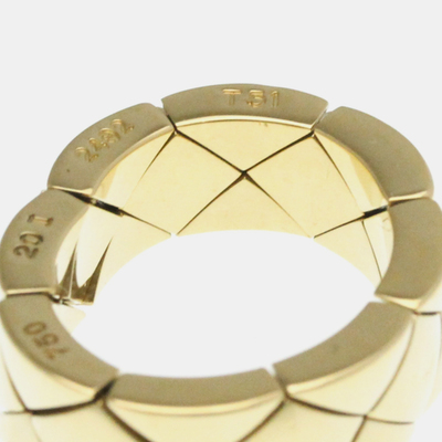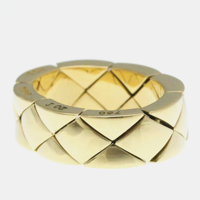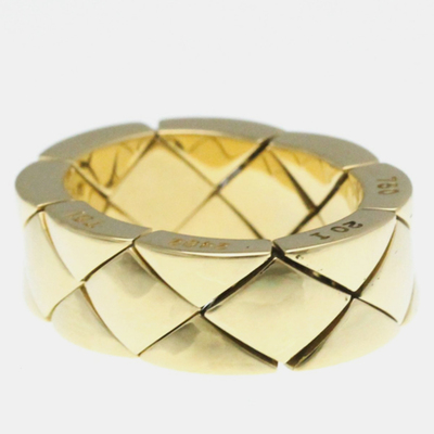 The Chanel Matelassé Band Ring in 18K yellow gold embodies understated sophistication. Its signature quilted motif and polished finish make it a versatile piece that complements any look.