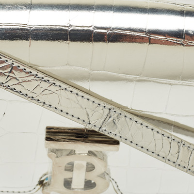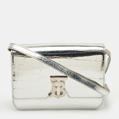 Burberry Silver Croc Embossed Patent Leather Small TB Shoulder Bag 1221718 (lpn31004772)