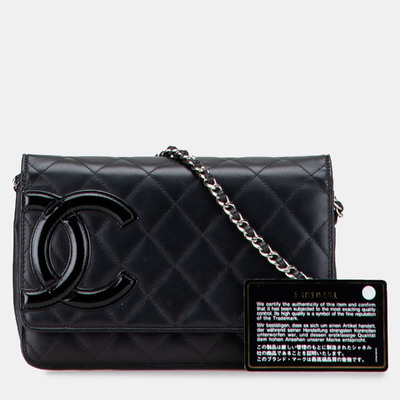 Discover effortless elegance with this authentic Chanel Black Lambskin Cambon Ligne Wallet on Chain (WOC). Crafted in supple black lambskin, this pre owned designer piece features Chanel’s signature Cambon Ligne design, offering both style and functionality. A pre loved classic, it’s an essential accessory for collectors and fashion enthusiasts seeking timeless Chanel sophistication.