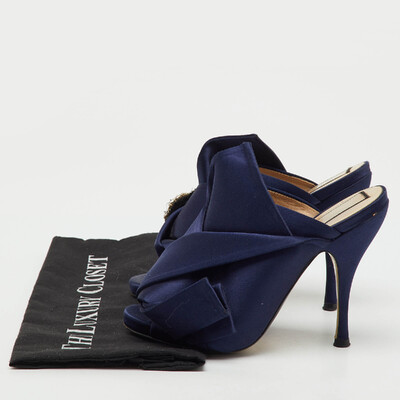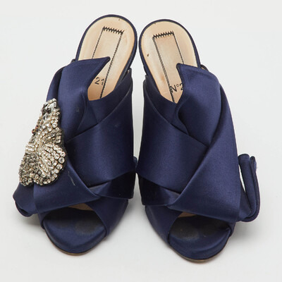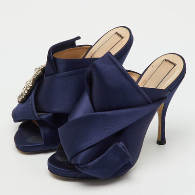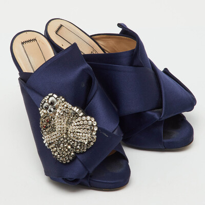 No. 21 Navy Blue Satin Crystal Embellishment Raso Knot Mules Size 36 1221460 No. 21 (lpn31004806)