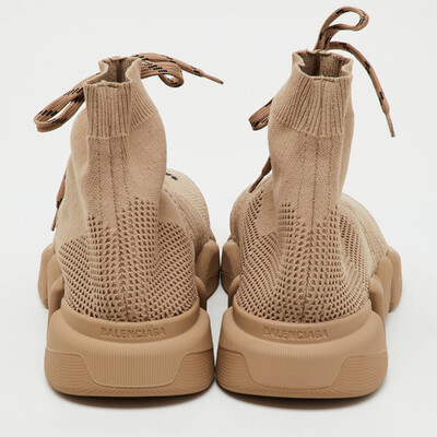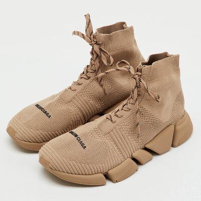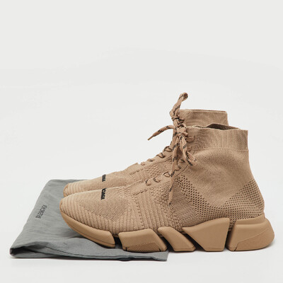 Balenciaga Beige Knit Fabric Speed 2.0 Lace Up High Top Sneakers Size 45 1221447 (бежевый, lpn31004827)