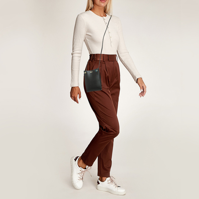 Burberry’s rivet pouch crossbody bag in black leather mixes minimal lines with metal accents for a subtle punk inflection. The compact shape and adjustable strap make it ideal for daily essentials. Wear it against trench coats or tailored jackets to echo the brand’s British roots.