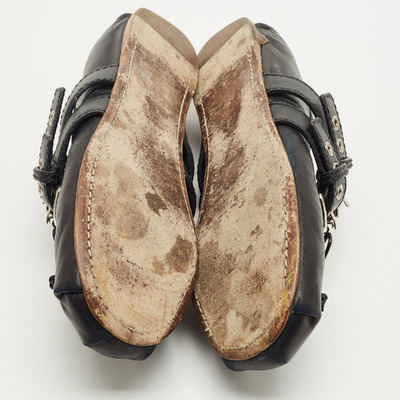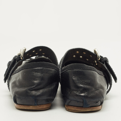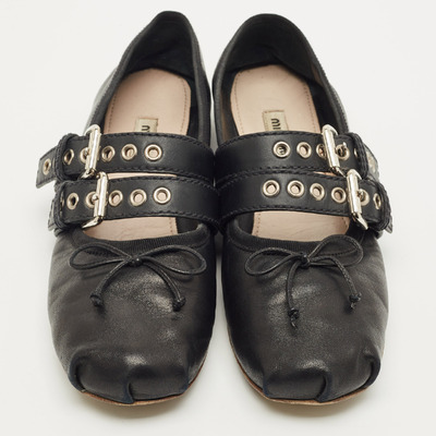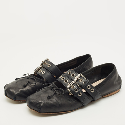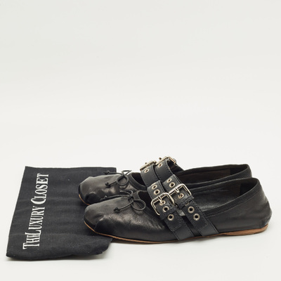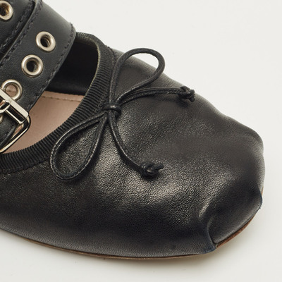 Miu Miu Black Leather Ankle Wrap Ballet Flats Size 39.5 1220984 (чёрный, lpn31004934)