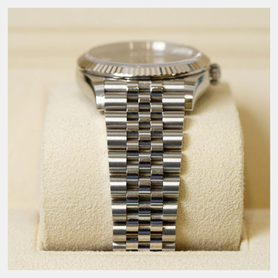 Infused with heritage and unmistakable character, this Datejust features the instantly recognizable Wimbledon dial — a colorway that pays homage to both sport and sophistication. Its balanced proportions and sharp detailing make it a staple for the modern gentleman with a respect for tradition.