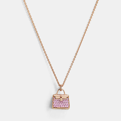 Hermès turns its iconic Kelly bag into a jewel sized treasure with this pendant. Cast in pink gold, the charm is shaped like the beloved handbag and sprinkled with pink sapphires for a delicate touch of color. A classic designed to rest close to the heart.