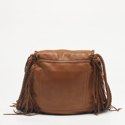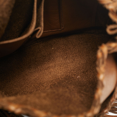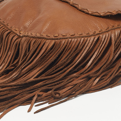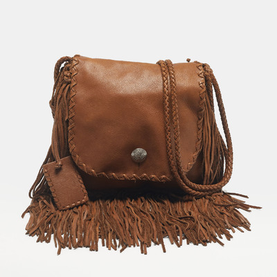 Smooth brown leather forms the body of the Ralph Lauren bag, while long fringes cascade from its sides and base, moving fluidly with each step. It’s a statement in motion—rich in texture, subtly bold, and made to carry your essentials with a lot of fun.