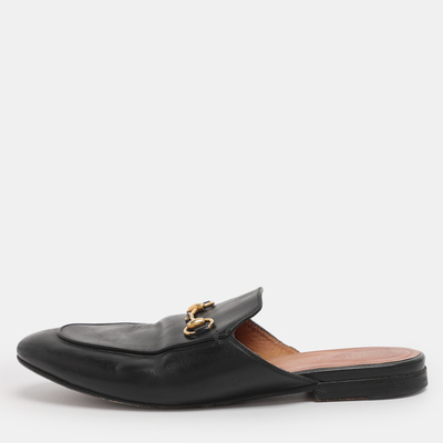 Gucci Black Leather Princetown Flat Mules Size 37.5 1222031 - 1
