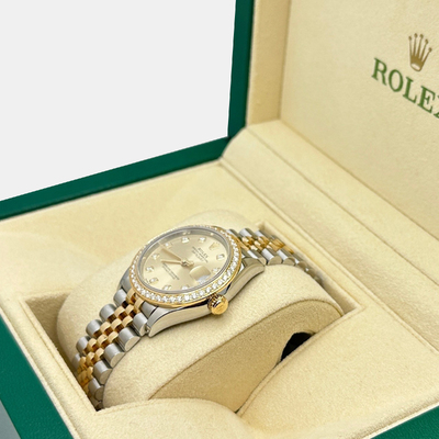 The Datejust 278383RBR dazzles with a diamond dial in 18K rose gold and stainless steel, with automatic movement for flawless timekeeping. Its 31 mm case is perfect for formal events, upscale casual outings, or luxurious everyday wear. A pre owned timepiece that epitomizes Rolex glamour.