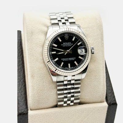 Rolex Datejust 178274 Automatic Black Stainless Steel 18K White Gold Men's Wristwatch 31 mm 1221280 (чёрный, lpn31005228)