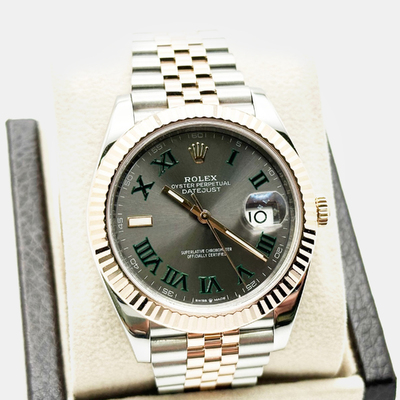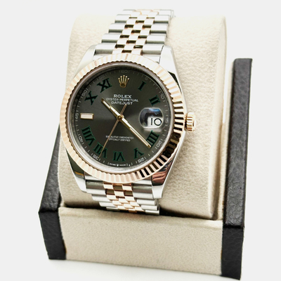 Elegant and contemporary, the Datejust 126331 features a slate dial paired with 18K rose gold and stainless steel. Its 41 mm case houses automatic movement, delivering precision and grace. Perfect for boardroom meetings, formal evenings, or elevated casual settings, this pre owned Rolex is a statement of refined taste.