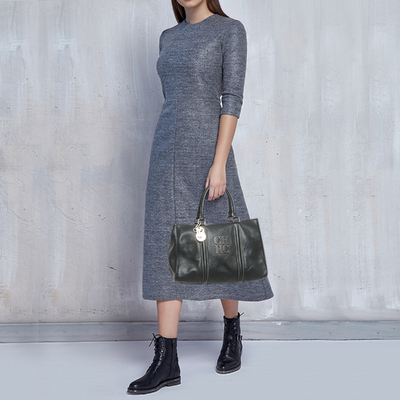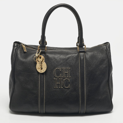 The Matteo satchel from Carolina Herrera is sleekly crafted in black leather with a polished structure. Double top handles and minimal gold tone hardware add to its refined look. Practical yet elegant, it’s designed to transition seamlessly from day to night.