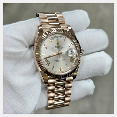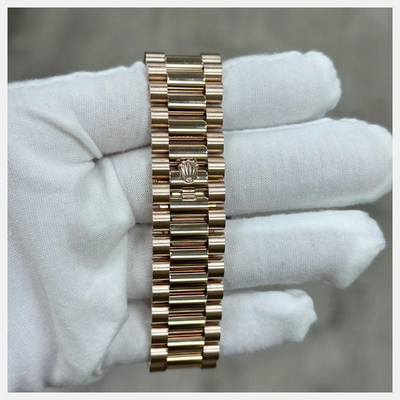 Luxury meets elegance in the Day Date 228235, featuring a Sundust dial in 18K rose gold. The 40 mm case and automatic movement ensure flawless performance, while its distinguished design suits boardroom meetings or gala evenings. This pre owned Rolex President exudes authority, sophistication, and timeless charm.