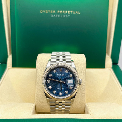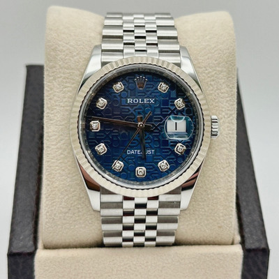 Rolex Datejust 126234 Automatic Blue Diamond 18K White Gold Stainless Steel Men's Wristwatch 36 mm 1221263 (голубой, lpn31005251)