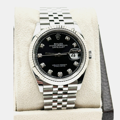Rolex Datejust 126234 Automatic Black Diamond Stainless Steel Jubilee Men's Wristwatch 36 mm 1221254 (чёрный, lpn31005253)