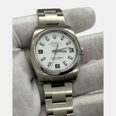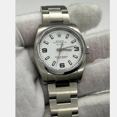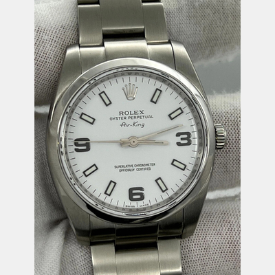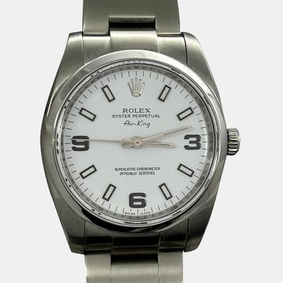 A refined expression of Rolex’s enduring aviation legacy, the Air King 114200 is an understated icon. With its clean white dial and sleek profile, this timepiece channels quiet confidence and effortless precision. A modern classic, it speaks to those who favor authenticity over ostentation—crafted not for display, but for distinction.
