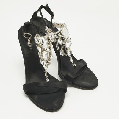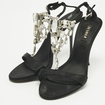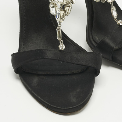 Le Silla Black Satin Crystal Embellish T-Strap Sandals Size 38.5 1220937 (чёрный, lpn31005303)