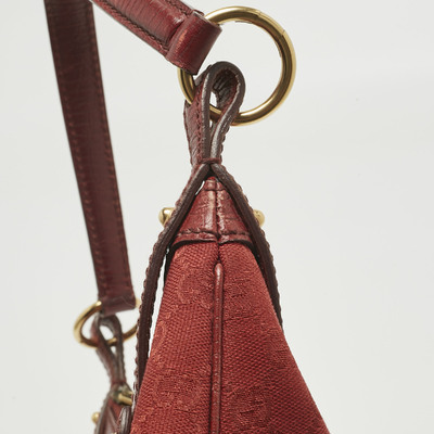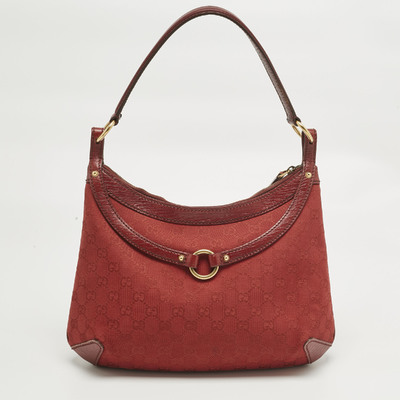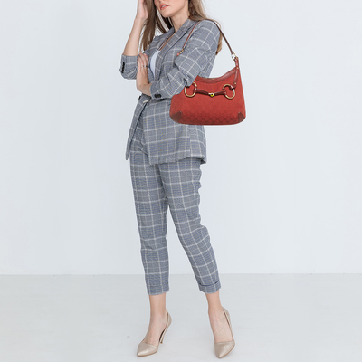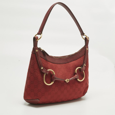The Gucci Horsebit Hobo in red GG canvas and leather feels like it’s made to move with you. Its slouchy shape embraces your essentials comfortably, while the signature horsebit adds a touch of heritage. Wear it over the shoulder and let this designer bag carry your day.
