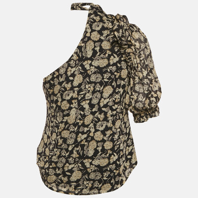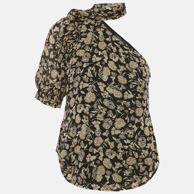 This Polo Ralph Lauren blouse features a one shoulder design with a black floral print. Its asymmetric cut lends contemporary sophistication. A versatile piece for both casual pairings and elevated looks.