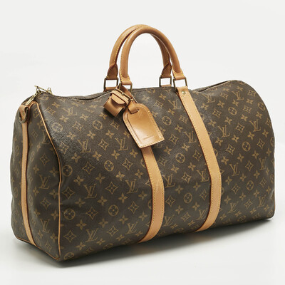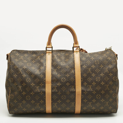 The Keepall Bandouliere 50 travels in rhythm with the wearer, its classic monogram canvas weathering sunlit sidewalks and bustling terminals alike. Every fold and strap seems to echo the journeys it’s meant to carry, blending heritage with effortless motion.