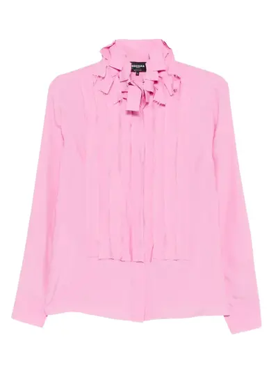 pink pleated detail ribbon detail long sleeves buttoned cuffs front button fastening