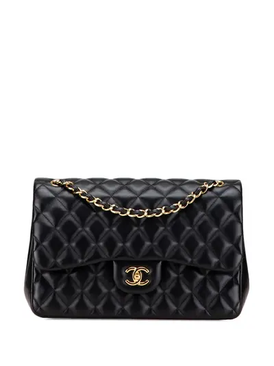 quilted lambskin leather body gold-tone leather woven chain link shoulder straps double front flaps with CC turn-lock closure exterior back slip pocket interior zip and slip pockets black Serial Number: 23412581 Inclusions: dust bag. Condition: EXCELLENT. This previously owned item is in near-perfect condition with no signs of damage or use. Due to the exclusivity of this item and its limited availability, processing and delivery might take longer than usual. Please refer to the photos on this product page for a detailed view of the item, including any damages declared.