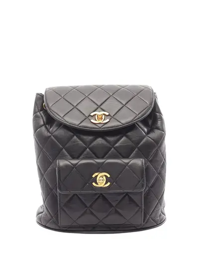 quilted lambskin leather body leather woven back straps front flap with twist lock closure drawstring closure exterior front flap pocket with twist lock closure black Serial Number: 3687140 This item has no inclusions. Condition: EXCELLENT. This previously owned item is in near-perfect condition with no signs of damage or use. Due to the exclusivity of this item and its limited availability, processing and delivery might take longer than usual. Please refer to the photos on this product page for a detailed view of the item, including any damages declared.
