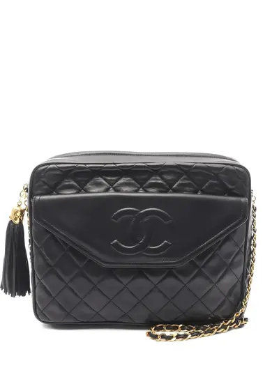 1989-1991 black lambskin quilted gold-tone hardware chain-link shoulder strap fringe detail