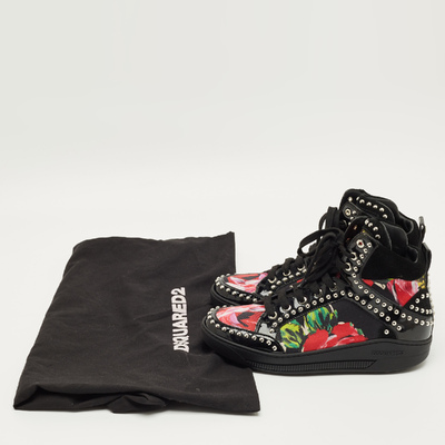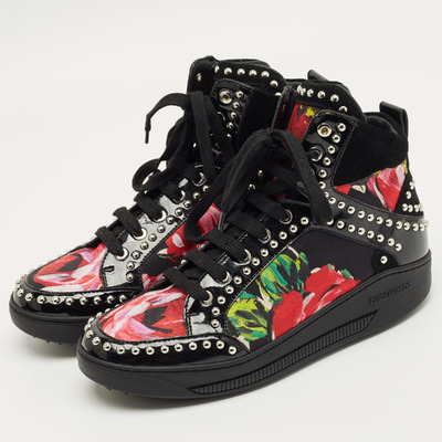 Dsquared2 Multicolor Floral Print Canvas and Patent Leather High Top Sneakers Size 38 1223188 (lpn31007279)