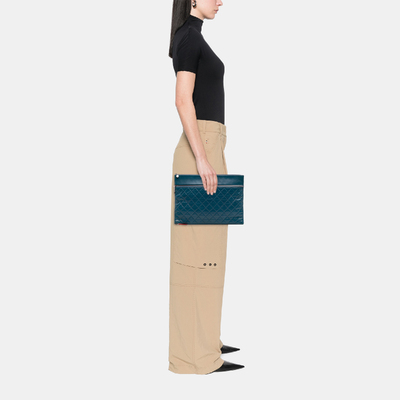 Add modern sophistication to your look with Chanel’s Multi Zip Clutch in blue quilted lambskin. Sleek, functional, and luxurious, this designer handbag elevates both day and evening ensembles effortlessly. An authentic, collectible piece perfect for fashion savvy style enthusiasts.