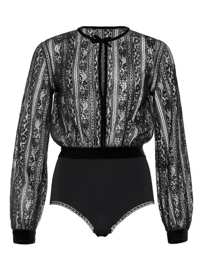 Eres Voltige lace-panel velvet bodysuit 30891313 (lpn31007291)