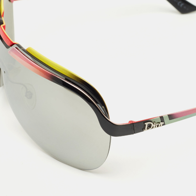 Dior’s 6ORSS Solar Shield sunglasses feature multicolour mirrored lenses in a bold wraparound shape, offering futuristic appeal and full eye coverage. Sleek arms and subtle branding nod to the maison’s runway heritage. Perfect for festivals, travel or injecting high fashion edge into casual outfits.