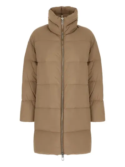 beige quilted funnel neck zip fastening long sleeves straight hem