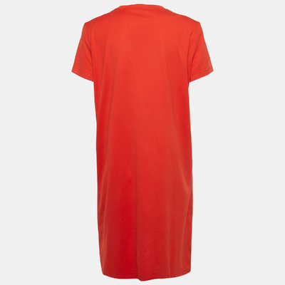 This Hermès T shirt dress is cut from soft red jersey and finished with a finely embroidered pocket. Effortlessly blending casual ease with the house’s meticulous attention to detail, it offers a versatile silhouette that can be styled for both relaxed days and understated outings.