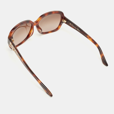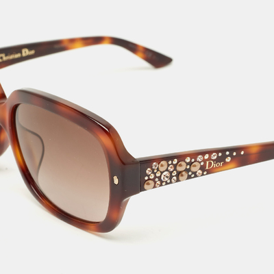 Dior’s Brillance F sunglasses reinterpret the square frame with a tortoise brown gradient finish accented by sparkling crystals at the temples. The combination of warm tones and embellishment creates a couture level accessory that flatters most face shapes. A statement piece that can elevate everything from tailored blazers to resort wear.
