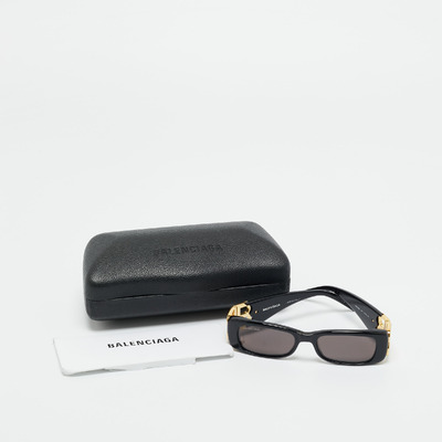 Balenciaga’s Dynasty sunglasses in black and gold tone channels bold geometry in a rectangular frame. Sleek lines and gleaming accents evoke the house’s unapologetic modernity. Pair with oversized tailoring or leather to echo their architectural edge.