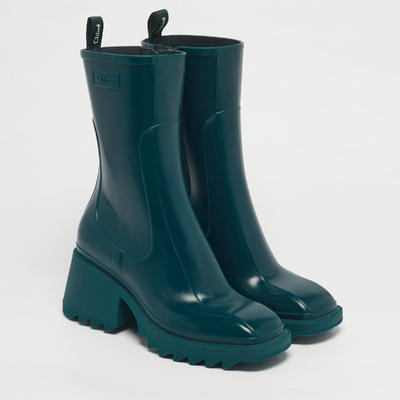 Chloé’s Betty rain boots turn practical footwear into a style statement with sculpted green rubber and a chunky sole. Subtle branding and sleek contours make them stand out from utilitarian versions. Perfect for pairing with trenches, mini skirts or layered knits on wet days.