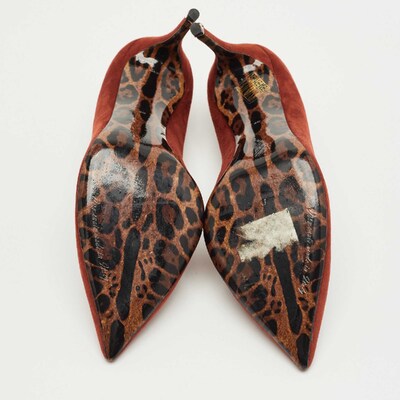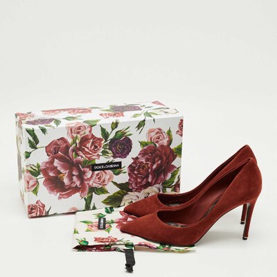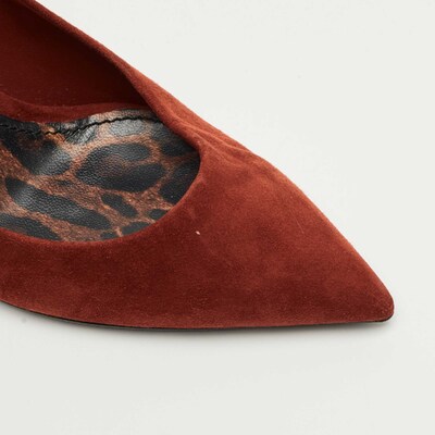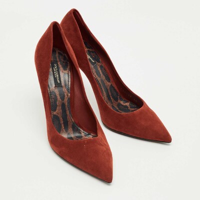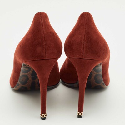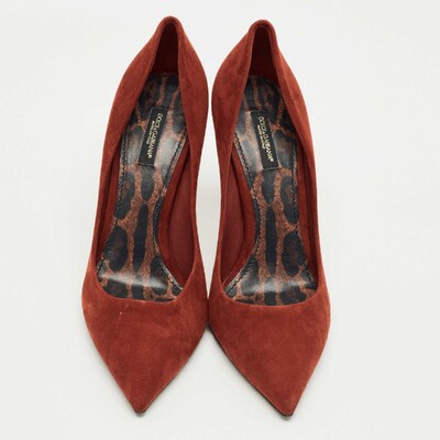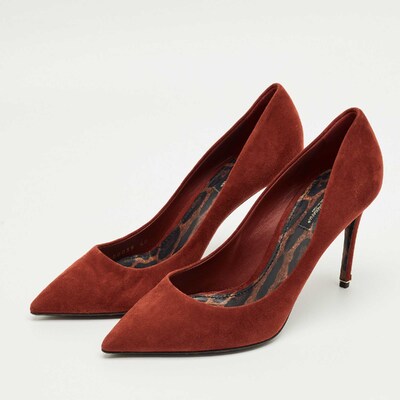 Dolce and Gabbana crafts these pointed toe pumps in rich brick red suede, combining a classic shape with a bold hue. The saturated colour adds depth to even the simplest looks. Wear with black tailoring or printed dresses for a shot of Sicilian glamour.