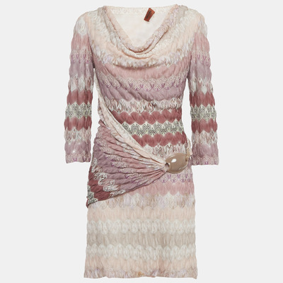 Missoni Multicolor Patterned Knit Belt Detail Midi Dress M 1222348 (lpn31007402)
