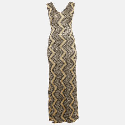 Picture this dress under the glow of candlelight at a dinner, or moving through the buzz of a cocktail party — its zigzag sequins glimmering as you shift. Missoni spins its signature knit in lurex, shaping a long, sleeveless silhouette that feels made for nights that linger.