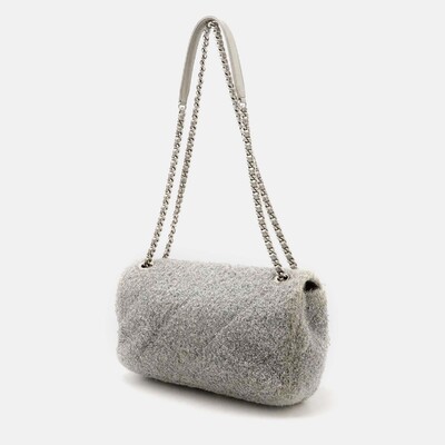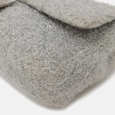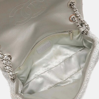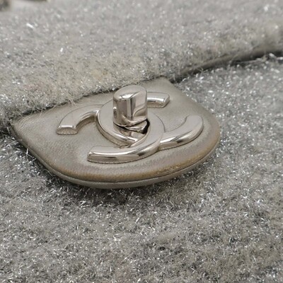 Chanel Silver Fabric Leather Pour Toe Glitter Coco Mark Chain Shoulder Bag 1053984 (lpn31007496)