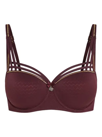 burgundy chevron pattern gold-toned detailed straps multi-strap design padded cups bow detail