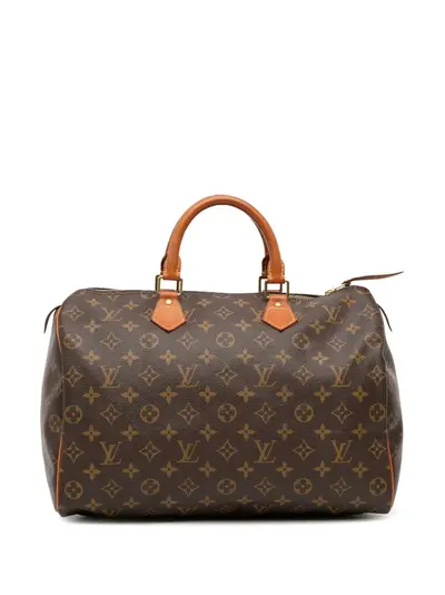monogram canvas body rolled vachetta leather handles top zip closure interior slip pocket brown Serial Number: SD2131 This item has no inclusions. Condition: GOOD. This previously owned and used item is in good condition with minimal signs of use. This may include fading of material or plating and scratches. Please refer to the photos on this product page for a detailed view of the item, including any damages declared.