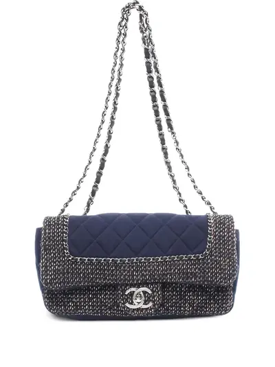 2014 navy blue tweed silver hardware chain strap quilted cotton jersey