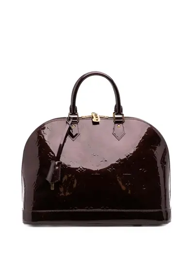 monogram vernis leather body rolled leather handles zip-around closure interior slip pockets red Serial Number: SN4192 Inclusions: charm, padlock, key. Condition: GOOD. This previously owned and used item is in good condition with minimal signs of use. This may include fading of material or plating and scratches. Please refer to the photos on this product page for a detailed view of the item, including any damages declared.