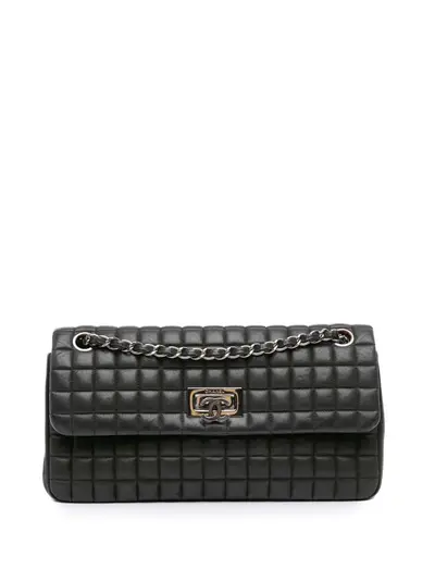 quilted iridescent calfskin body leather-woven chain straps front flap with flip lock closure interior zip pocket black Serial Number: 20132097 This item has no inclusions. Condition: GOOD. This previously owned and used item is in good condition with minimal signs of use. This may include fading of material or plating and scratches. Please refer to the photos on this product page for a detailed view of the item, including any damages declared.
