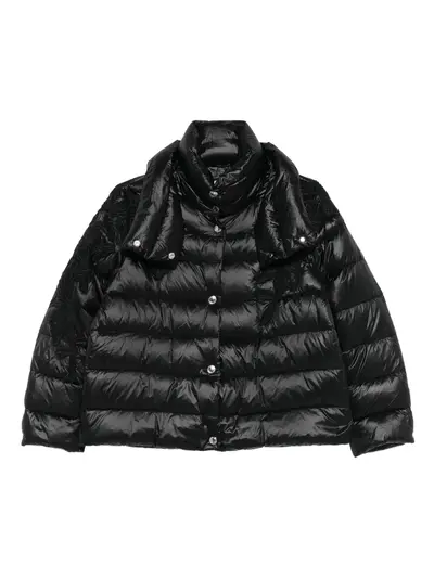 black front press-stud fastening high neck long sleeves padded design detachable hood