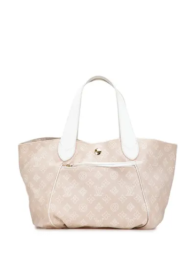 canvas body with leather trim flat leather straps open top with hook clasp closure exterior front zip pocket interior slip pockets zip pouch brown Serial Number: MB1009 Inclusions: pouch. Condition: GOOD. This previously owned and used item is in good condition with minimal signs of use. This may include fading of material or plating and scratches. Please refer to the photos on this product page for a detailed view of the item, including any damages declared.