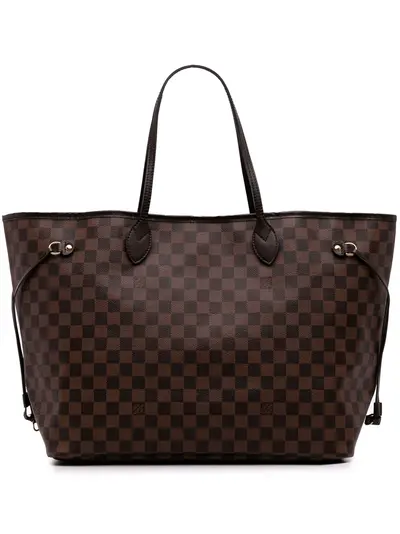 damier canvas body with leather trim flat leather shoulder straps open top with lobster claw hook closure interior zip pocket brown Serial Number: FL2184 This item has no inclusions. Condition: GOOD. This previously owned and used item is in good condition with minimal signs of use. This may include fading of material or plating and scratches. Please refer to the photos on this product page for a detailed view of the item, including any damages declared.