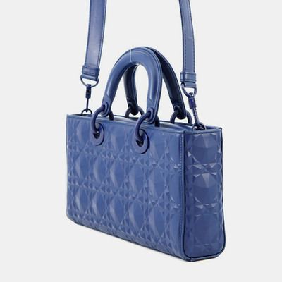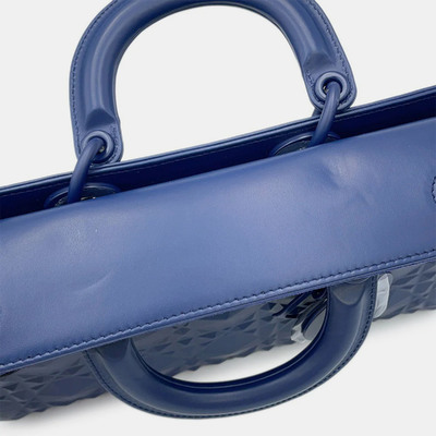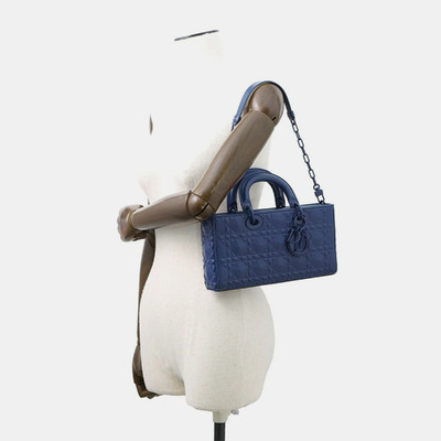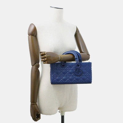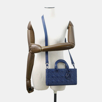 Dior Lady D Joy Cannage 2-Way Bag Navy Leather Size Medium 1223577 (lpn31009706)